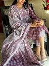 A serene pastel pink suit set adorned with delicate thread embroidery and gota lace, blending subtle elegance with ethnic charm. Perfect for daytime celebrations or graceful everyday wear. β¨