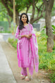 A mesmerizing Bagru hand block printed suit set in blush pink, featuring intricate floral motifs on soft cotton fabric, offering a perfect fusion of elegance, tradition, and comfort.