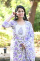 A soft and romantic hand block printed cotton set with floral all-over motifs and a sheer printed dupatta, perfect for effortless daytime elegance.