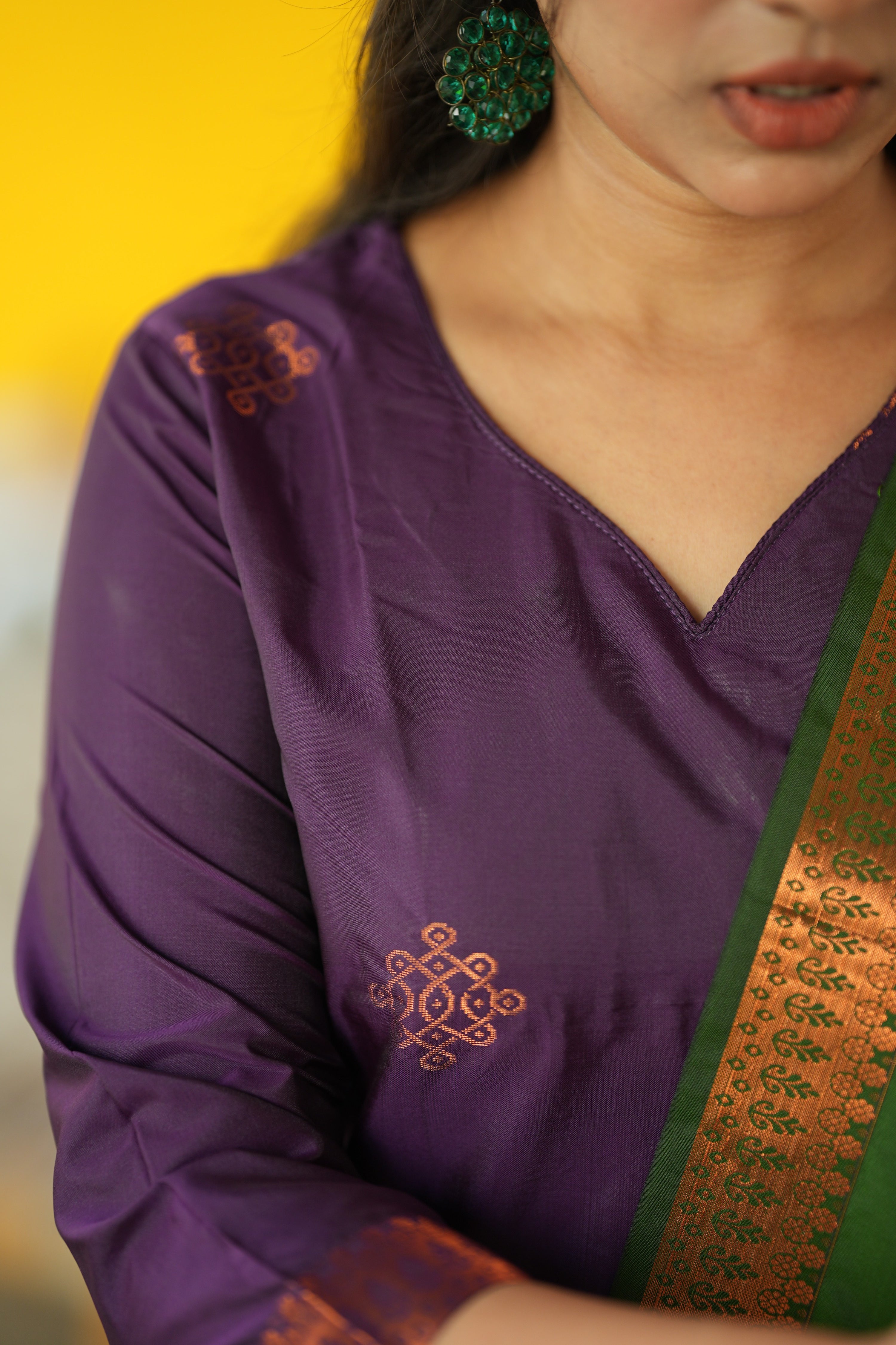 ๐ฟ โRegal Weave โ Purple & Green Pochampally Setโ