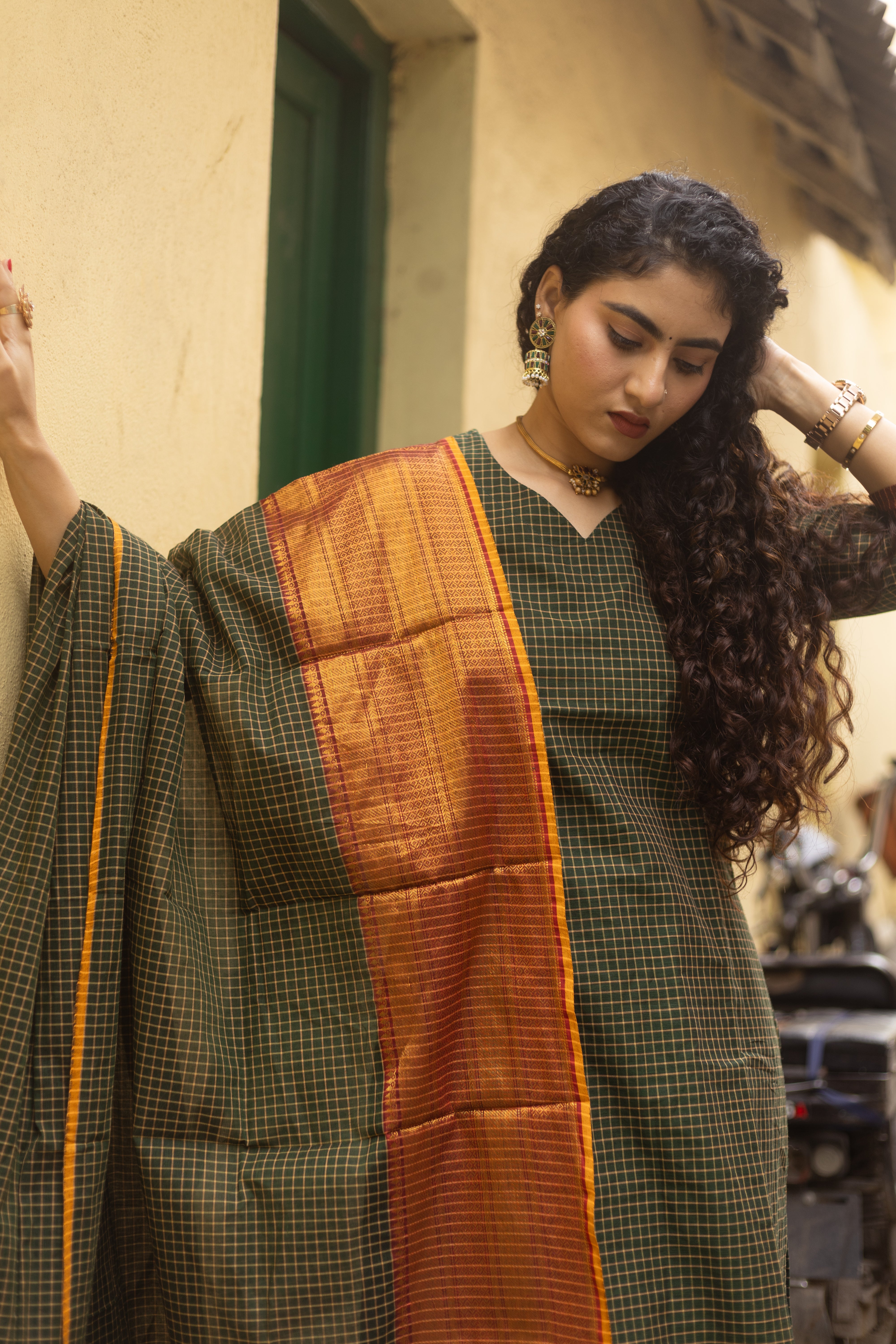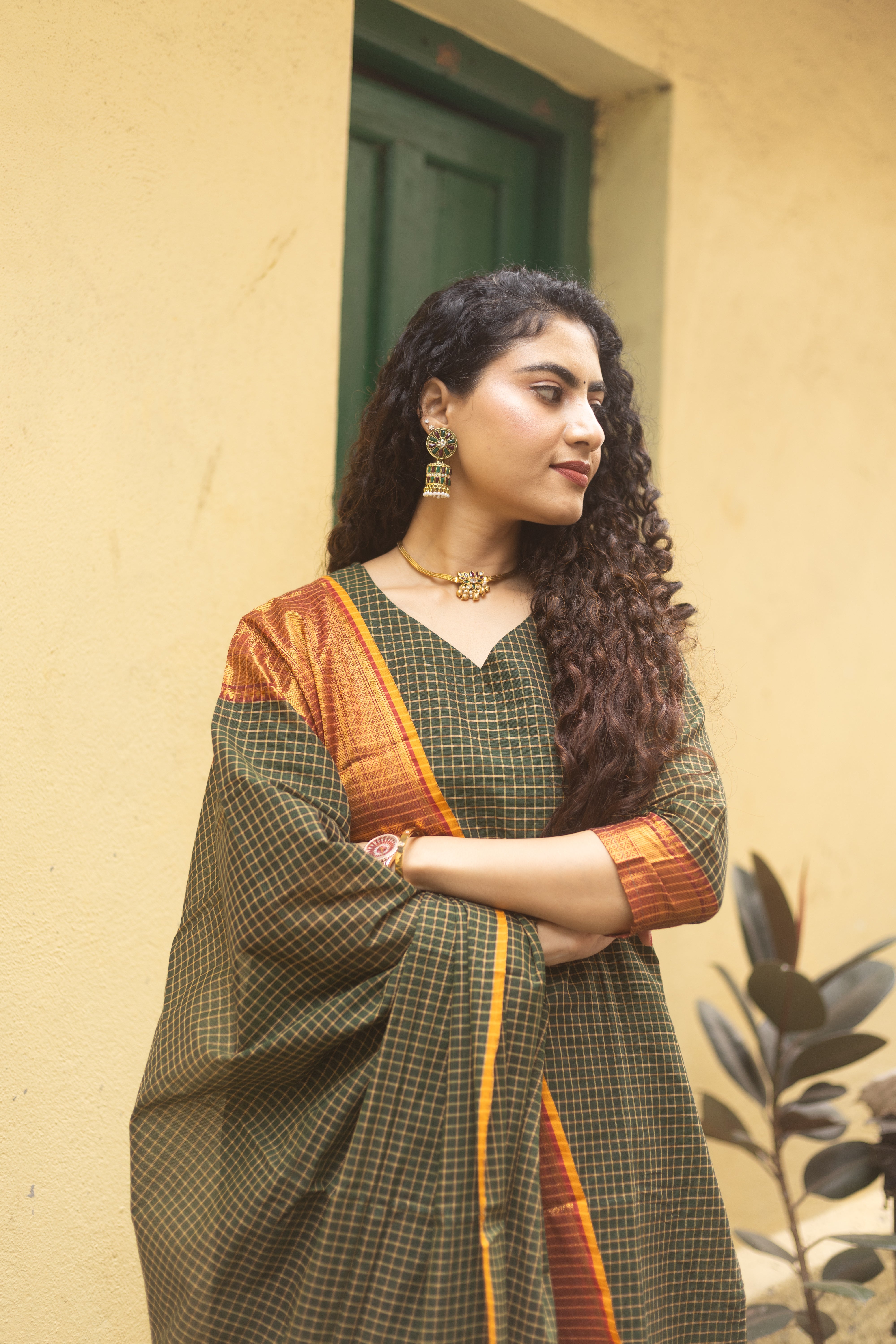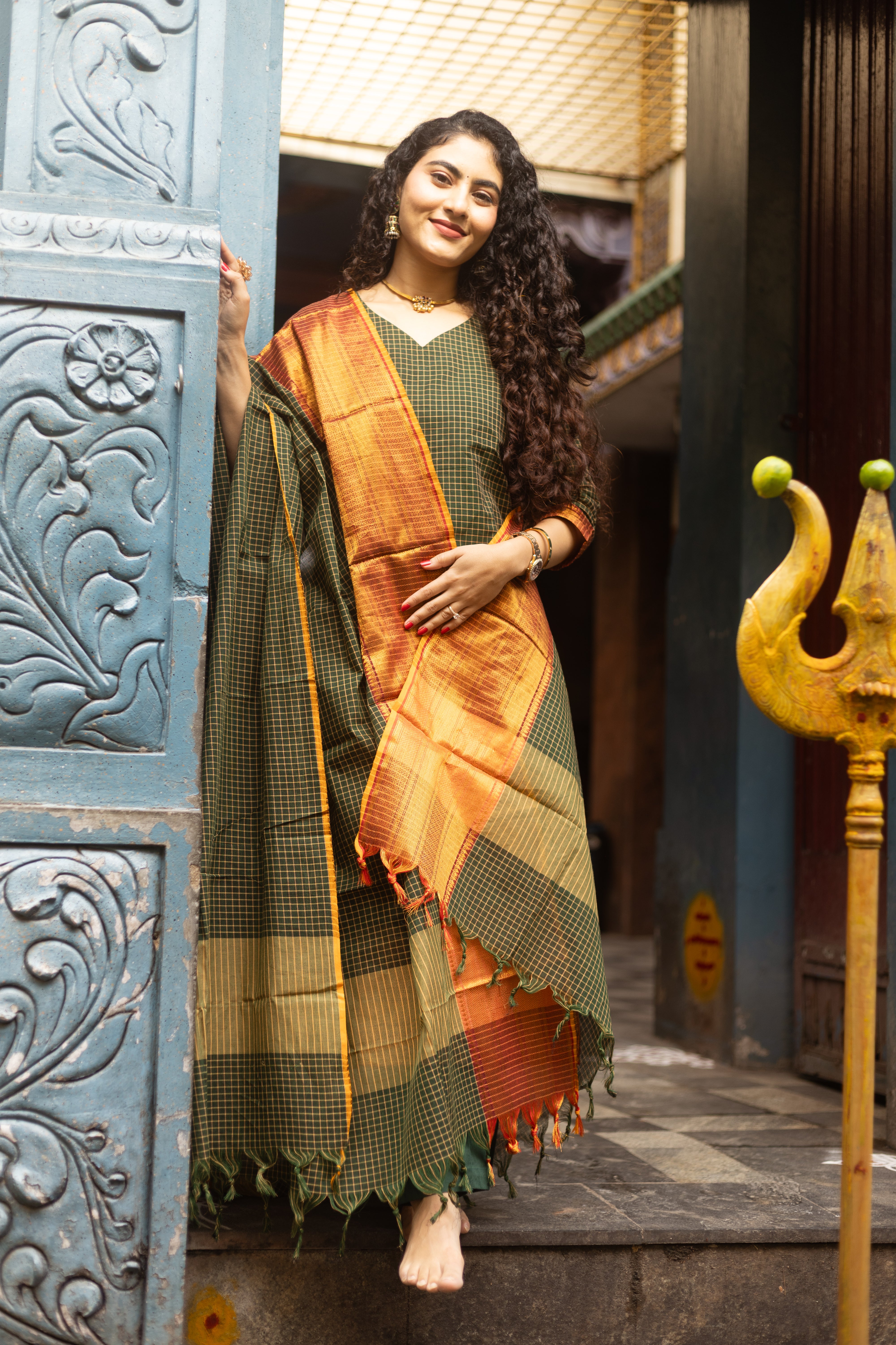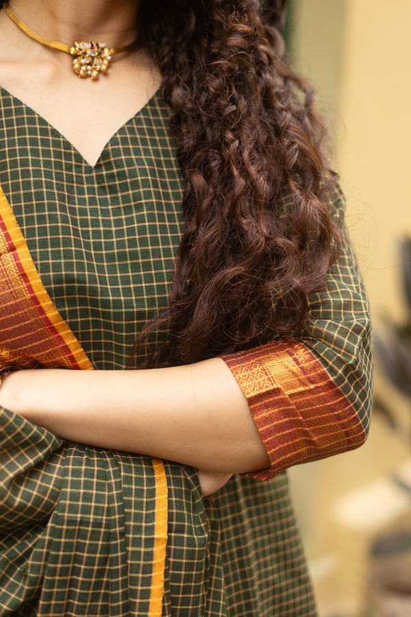 ✨PattuPaavai Checks – Rust Olive Edition ✨