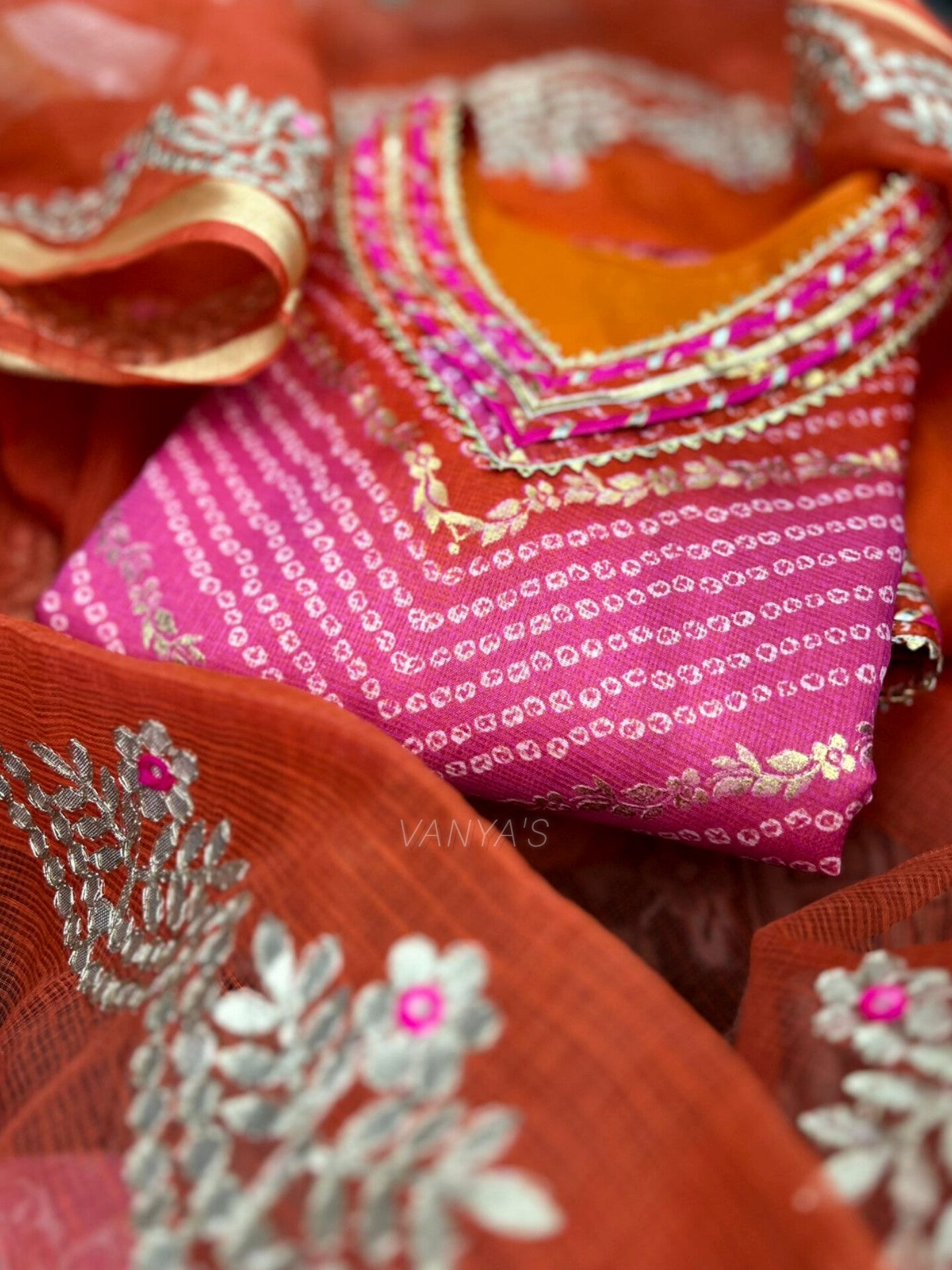 - Traditional Lehriya Print: The classic Rajasthani lehriya print and orange on Kota Doria fabric brings a vibrant and authentic touch.