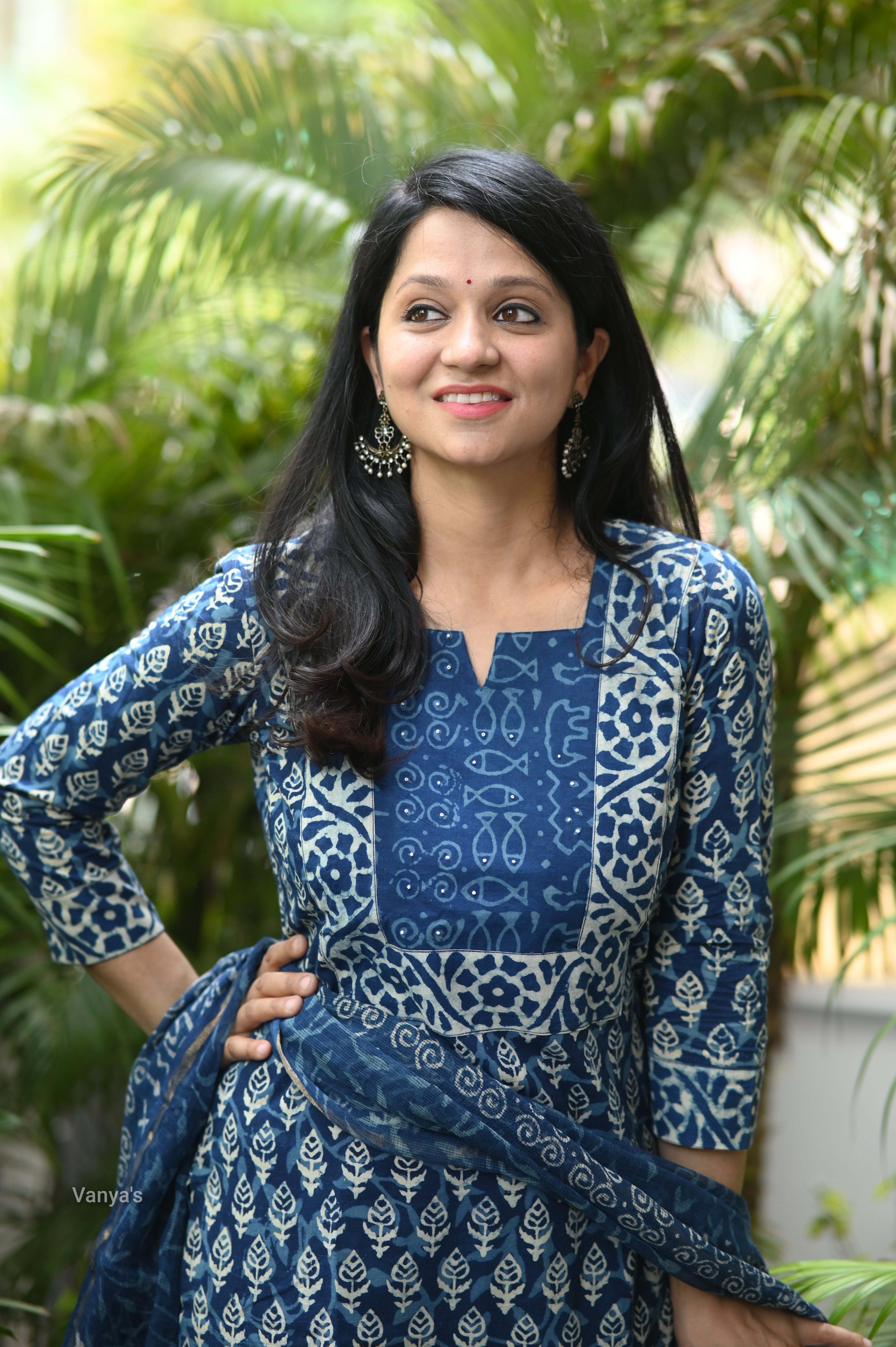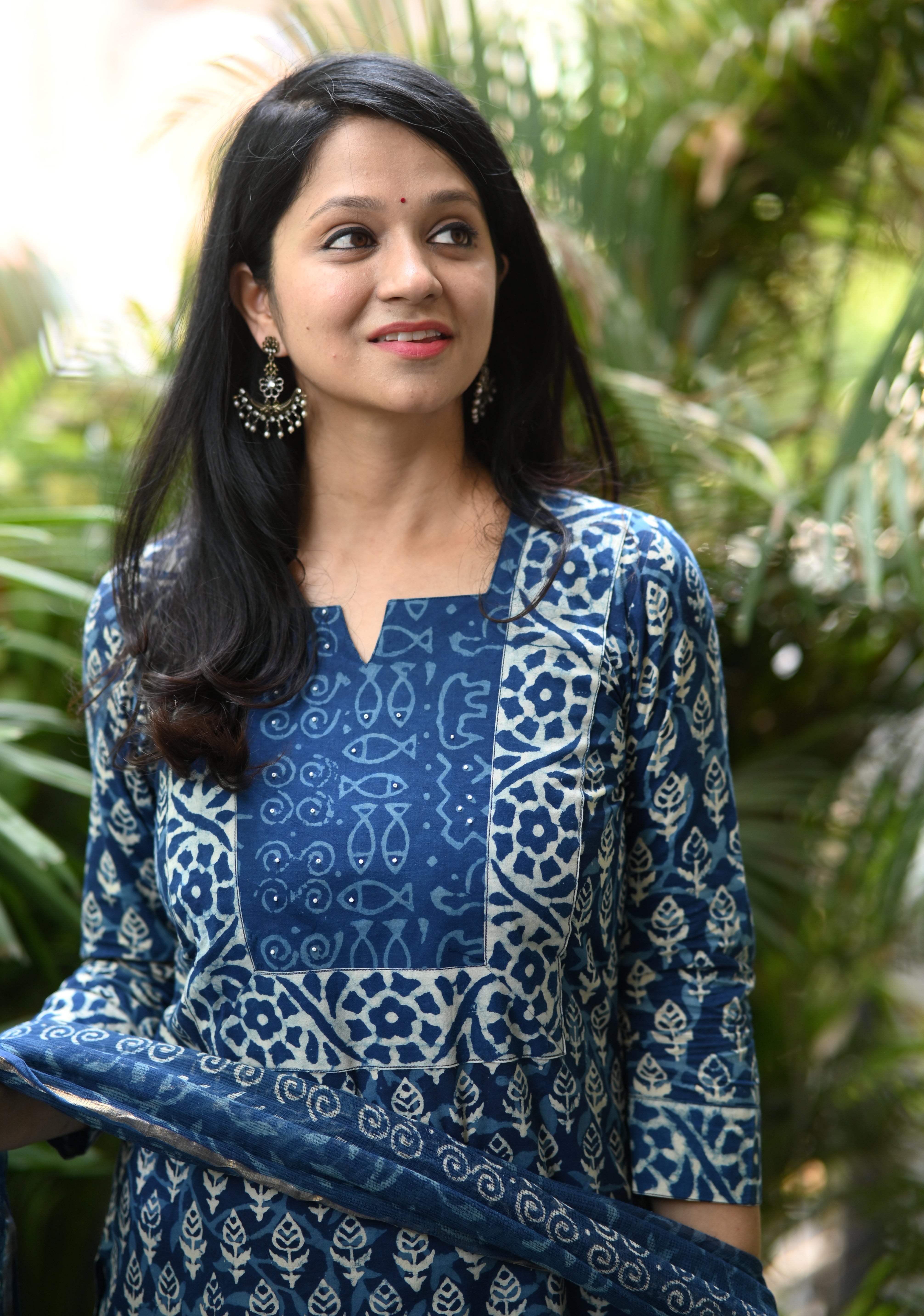Meharinsha Indigo Bloom Handblock Suit Set 🌿