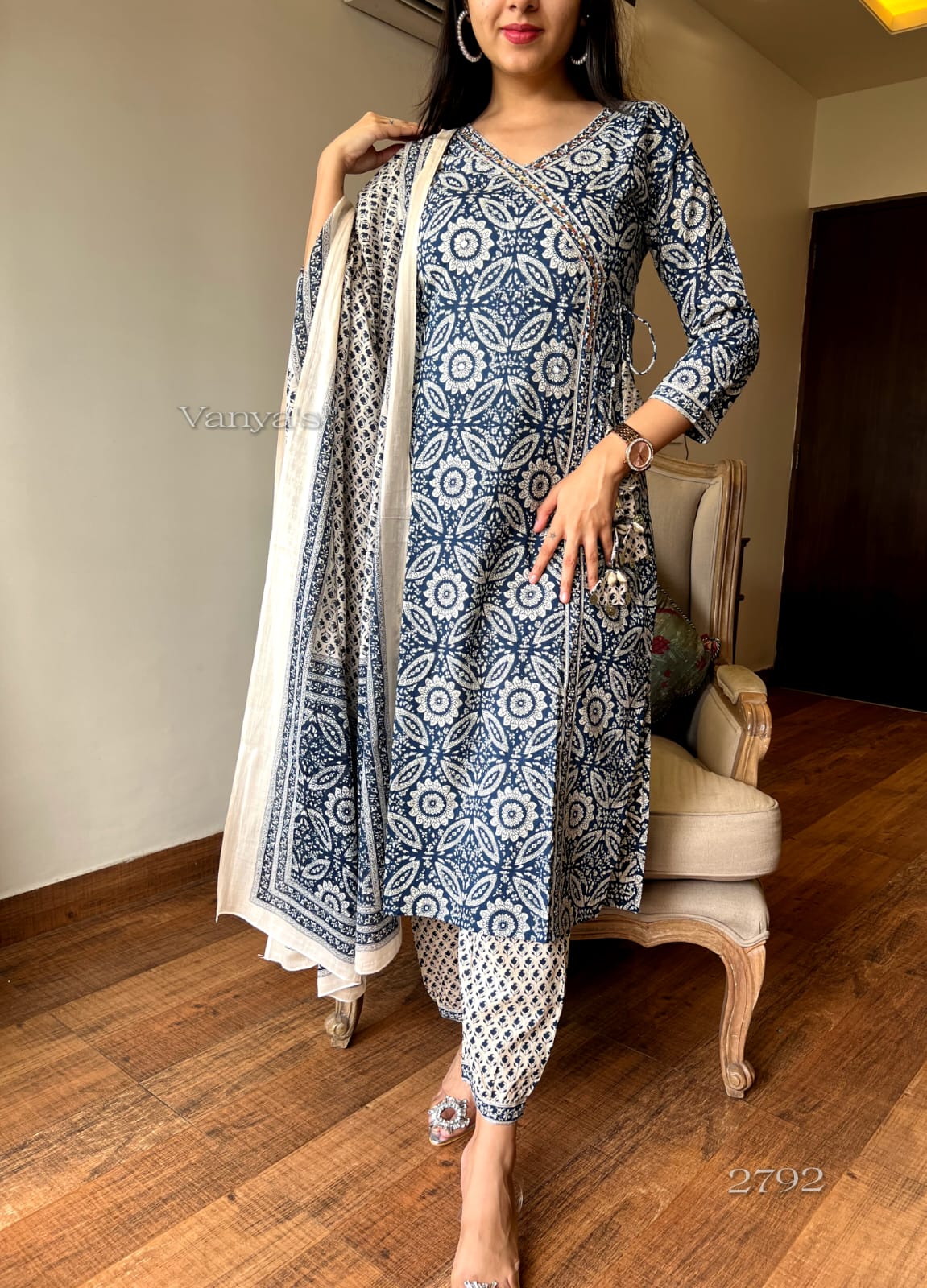 The set is paired with a gorgeously coordinated printed pant and a lightweight dupatta with traditional block print palla detailing – making it perfect for casual brunches, ethnic Fridays, or festive family gatherings.