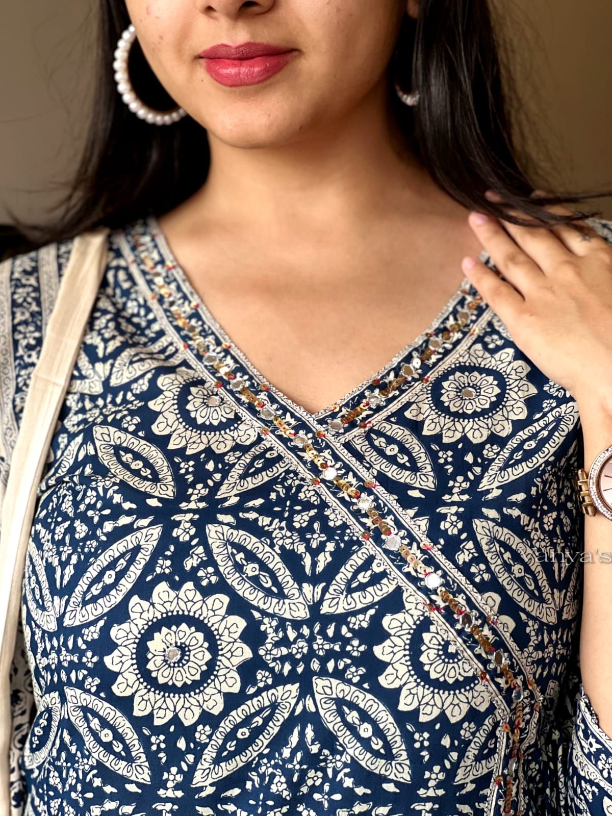 The placement of printed or embroidered patterns may vary slightly due to the crafting process, ensuring every piece is unique. - Irregularities in Hand Block Prints Please note that hand block printing is an artisanal craft, performed entirely by hand. This process may result in slight variations, misalignments, or irregularities in the print. These subtle differences are not defects but a testament to the handmade nature of the product, adding character and uniqueness to each piece.